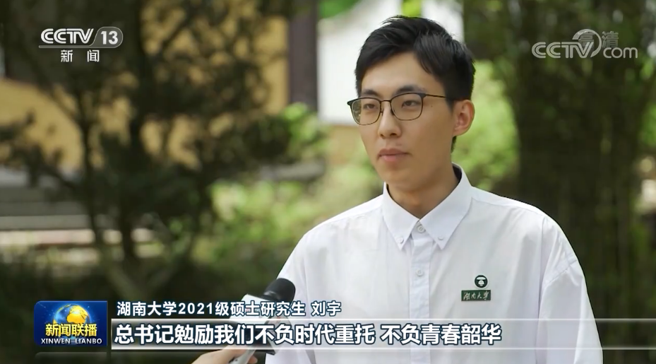 湖南大学2021级硕士研究生 刘宇:总书记勉励我们不负时代重托、不负青春韶华,这强烈地激发着我们的使命感和责任感。作为新时代的青年学子,我们生逢盛世,也肩负重任,要用所学所思传承好红色文化精神,为中华民族伟大复兴贡献我们的才智。