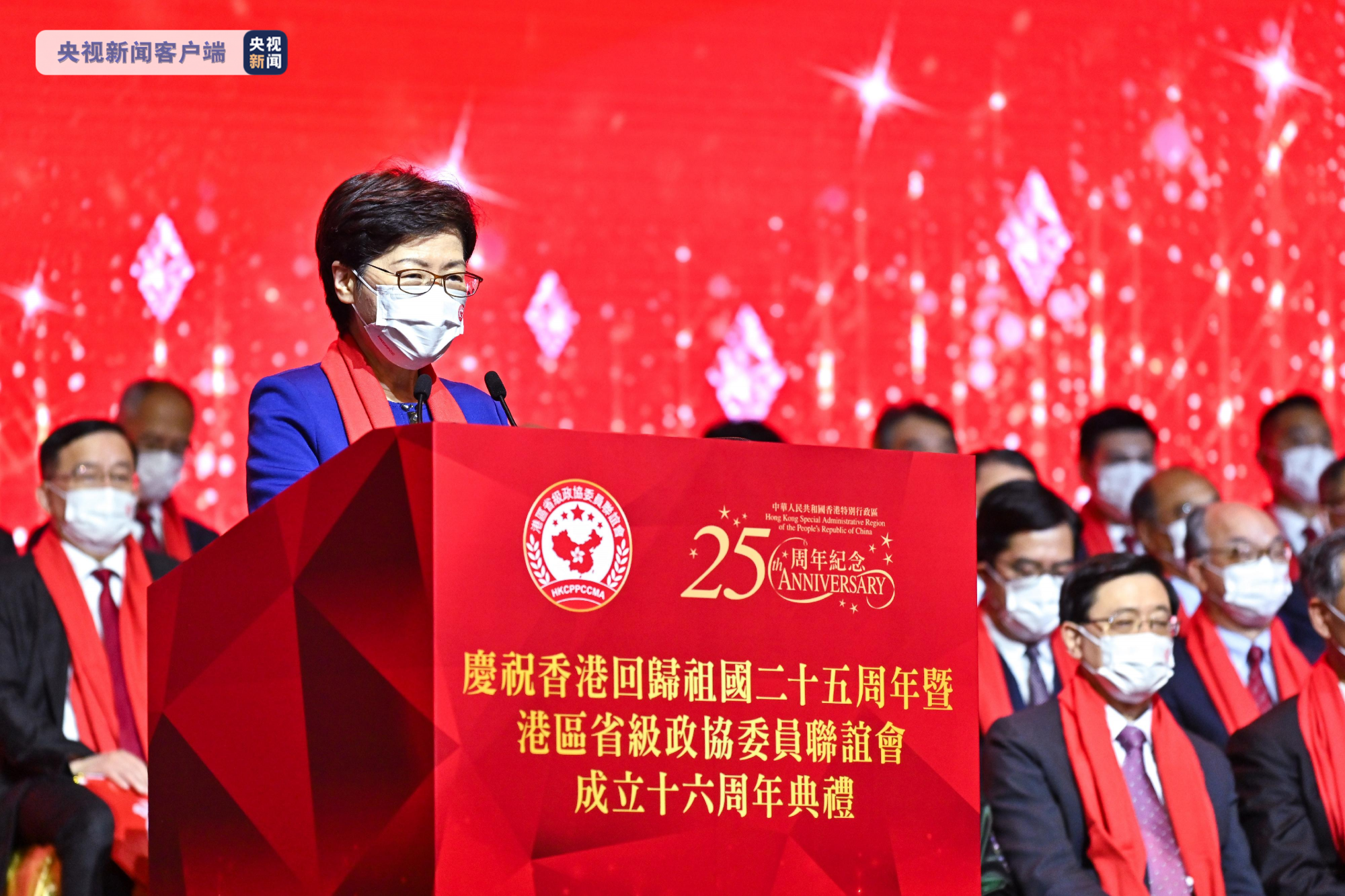 16日,“庆祝香港回归祖国25周年暨港区省级政协委员联谊会成立16周年”典礼在香港会展中心举行。全国政协副主席梁振英、香港特区行政长官林郑月娥、香港特区候任行政长官李家超等嘉宾出席典礼。