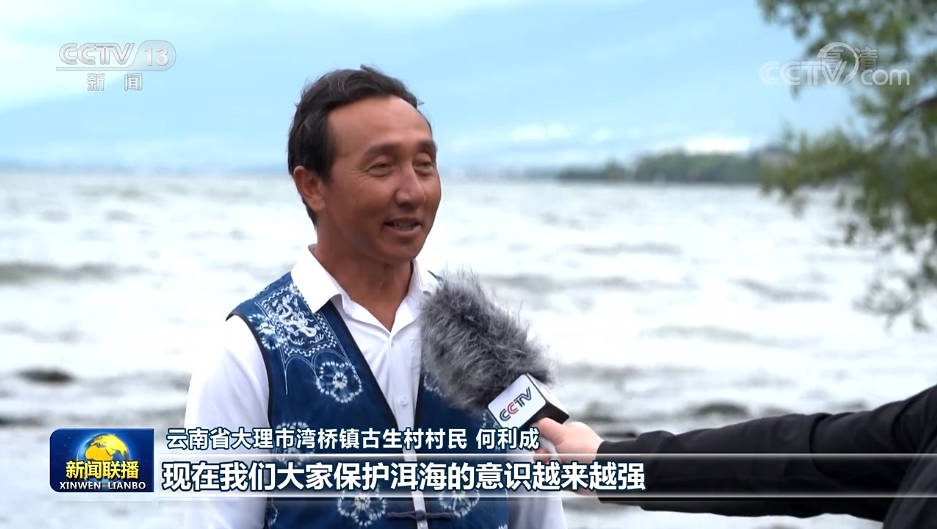 云南省大理市湾桥镇古生村村民 何利成:现在我们大家保护洱海的意识越来越强,洱海水也越来越清,游客也更愿意来,我们生活在这里越来越幸福,我们很自豪地向总书记报告,我们守护住了绿水青山,也换来了金山银山。