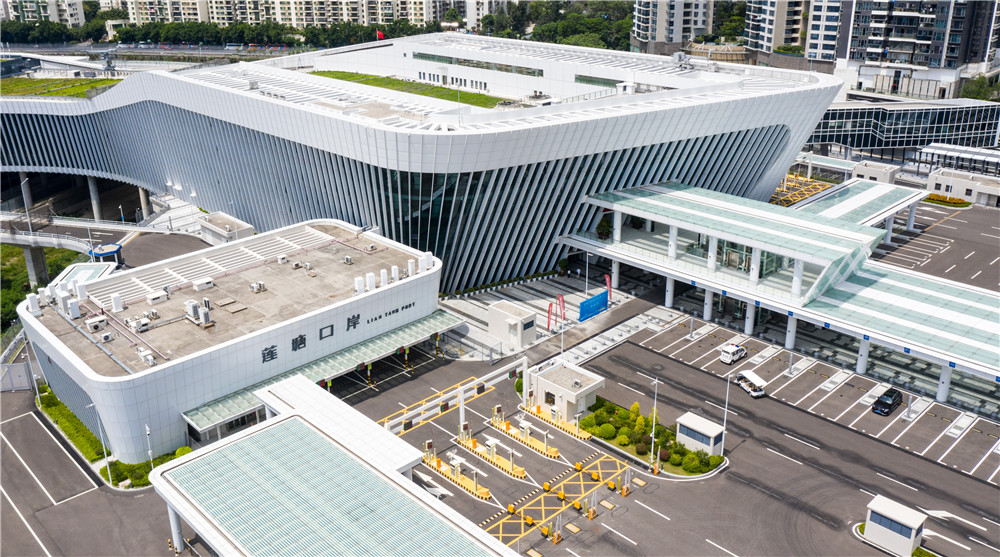 这是莲塘/香园围口岸(2020年8月26日摄,无人机照片)。该口岸是深港间第七座陆路口岸。新华社记者 毛思倩 摄