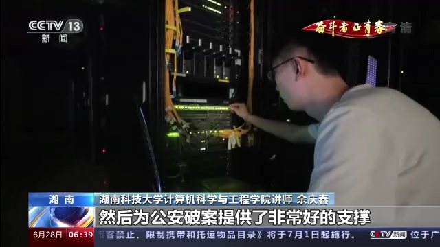 湖南科技大学计算机科学与工程学院讲师 余庆春:他用自己的技术和自己的团队几乎是几天几夜都在搜索这个网络当中的一些漏洞,最终是通过一个很小的服务接口获取了他们非法交易的证据,然后为公安破案提供了非常好的支撑。