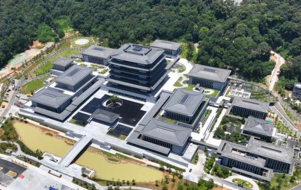 距广东广州中心城区约90公里,中国国家版本馆广州分馆文沁阁坐落于广州市从化区美丽的凤凰山麓、流溪河畔。据介绍,广州分馆总用地规模为24.69万平方米,总建筑面积9.43万平方米。