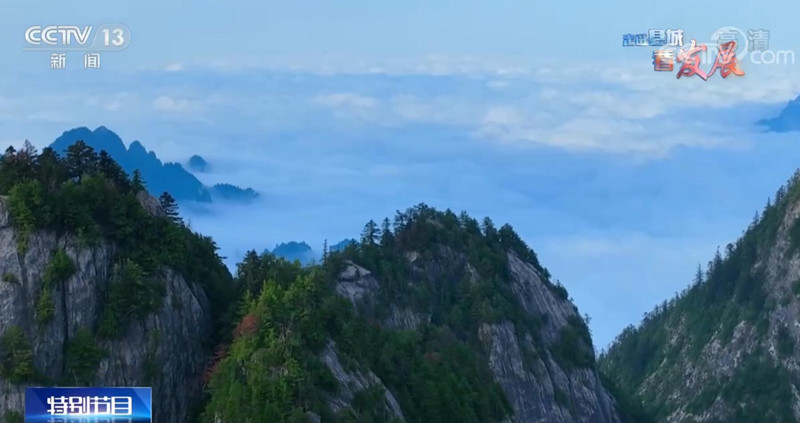 这里是位于眉县的秦岭主峰太白山,气势雄伟,高耸入云,海拔3771米。太白山的主体由庞大的花岗岩体组成,保留着完整的第四纪冰川遗迹,几经地质构造变动,塑造了太白山奇峰林立、山势峥嵘的壮美景色。