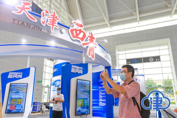 在西青展厅旁,大屏上正播放着“你好天津 魅力西青”形象宣传片,“传统”与“创新”在西青展厅争相辉映。京杭大运河穿区而过,运河文化、民俗文化、年画文化、赶大营文化、精武文化等地域文化在这里积淀而生,而国家级车联网先导区,科技服务、人工智能、会议会展等优势产业也在西青迅速发展。