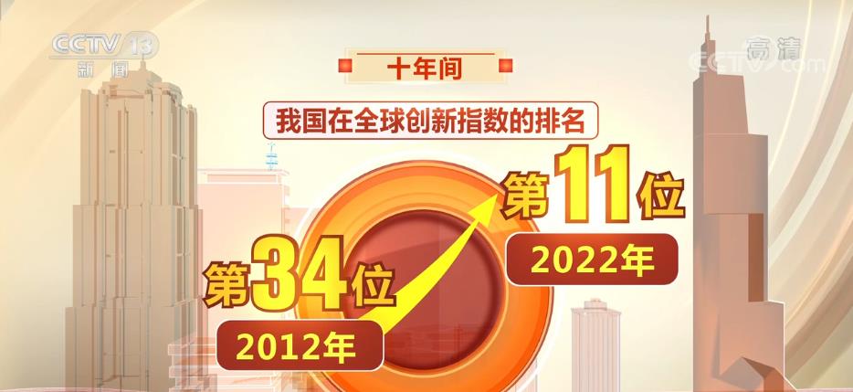 十年间,我国在全球创新指数的排名,已从2012年的第34位上升到2022年的第11位。