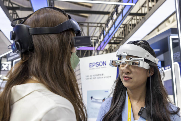 11月8日上午,2022年“互联网之光”博览会正式开幕。图为爱普生推出的BT-45CS增强现实智能眼镜,通过连接专用控制器,可以实现工业巡检、远程指导等。浙江新闻客户端记者 朱海伟 摄