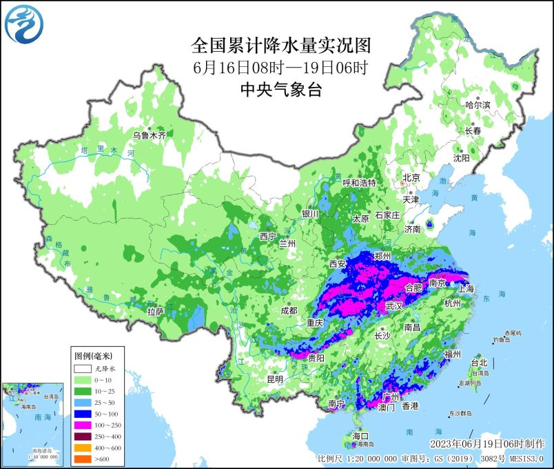 央视网消息:据中央气象台网站消息,6月16日以来,我国长江中下游地区进入强降雨集中期,江苏、上海、安徽、湖北、湖南及重庆、贵州等地部分地区累计降雨量超过100毫米,江苏镇江,贵州安顺,广西防城港,广东茂名、阳江和江门等局地降雨量达到250~349毫米。