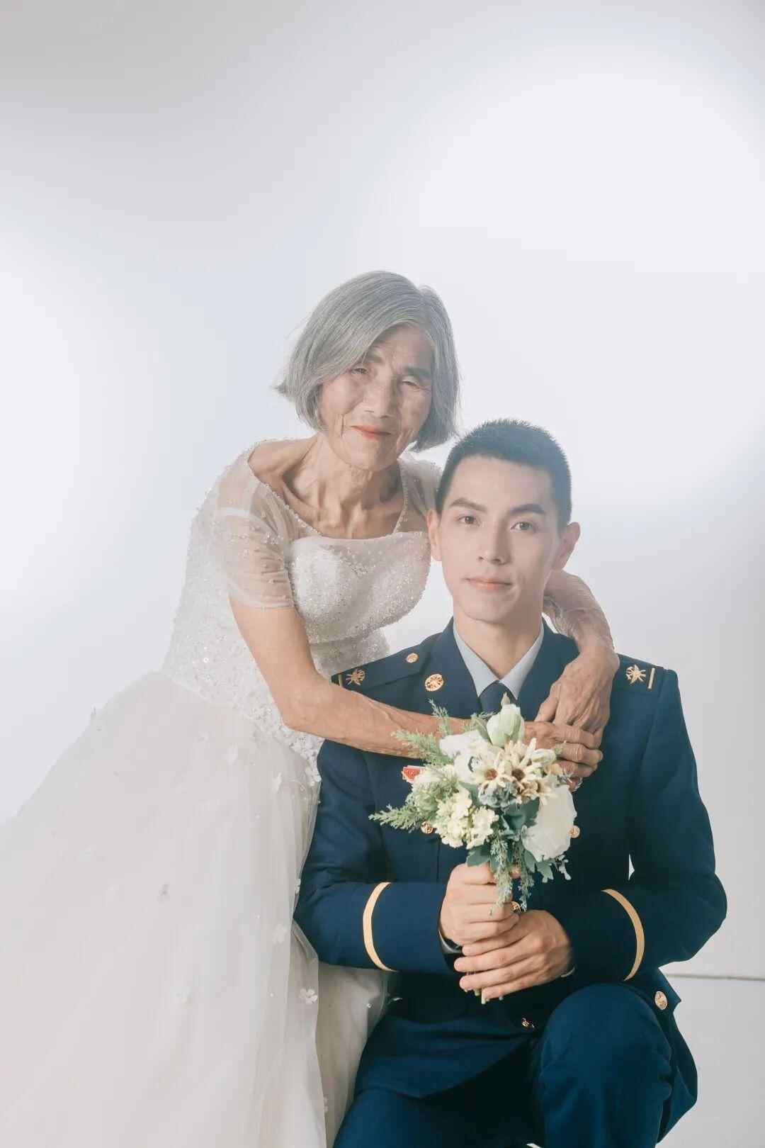 然而,拍摄当天,外公因身体原因未能成行。张佳港便穿上制服,陪外婆完成了拍摄。