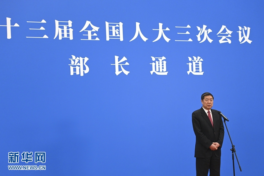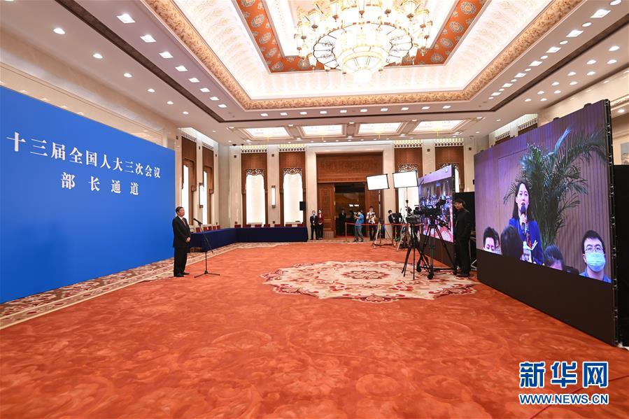5月22日,第十三届全国人民代表大会第三次会议举行首场“部长通道”采访活动。这是国家发展和改革委员会主任何立峰通过网络视频方式接受采访。 新华社记者 陈晔华 摄