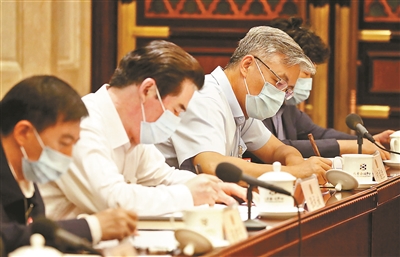 25日,十三届全国人大三次会议北京市代表团召开代表小组会议,继续审议民法典草案,审议全国人民代表大会关于建立健全香港特别行政区维护国家安全的法律制度和执行机制的决定草案。会上,几名代表聚精会神读文本、做记录。 摄影/武亦彬