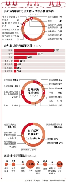 报告还透露,去年对13起贪污贿赂犯罪嫌疑人逃匿、死亡案件提出没收违所得申请。对司法工作人员侵犯公民权利、损害司法公正犯罪立案侦查871人。