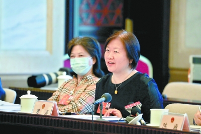 在北京团小组会上,罗瀛代表就推动智慧社区建设畅谈建议。本报记者 武亦彬摄