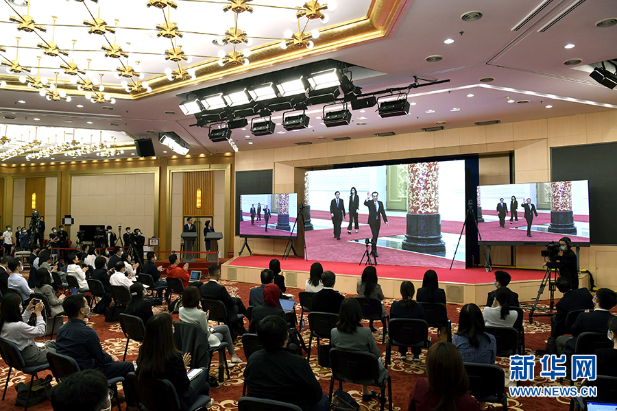 5月28日,国务院总理李克强在北京人民大会堂出席记者会并回答中外记者提问。这是记者在梅地亚中心多功能厅采访。 新华社记者 金良快 摄