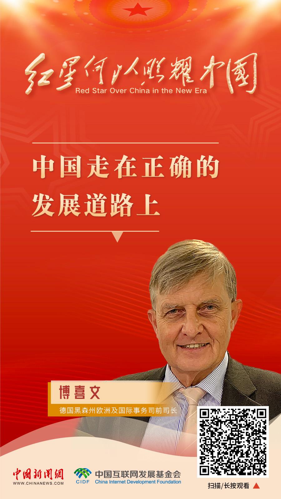 德国黑森州欧洲及国际事务司前司长博喜文长期观察中国发展。他表示,中国过去十年间发展成果颇丰。中国提出了“人类命运共同体”理念,符合全人类共同利益。他注意到,即使处于当前的新冠疫情时期,中国仍在全球主要经济体中一枝独秀。谈及即将召开的中共二十大,博喜文表示,中国走在正确的发展道路上,希望中国能一直顺着这条道路走下去。