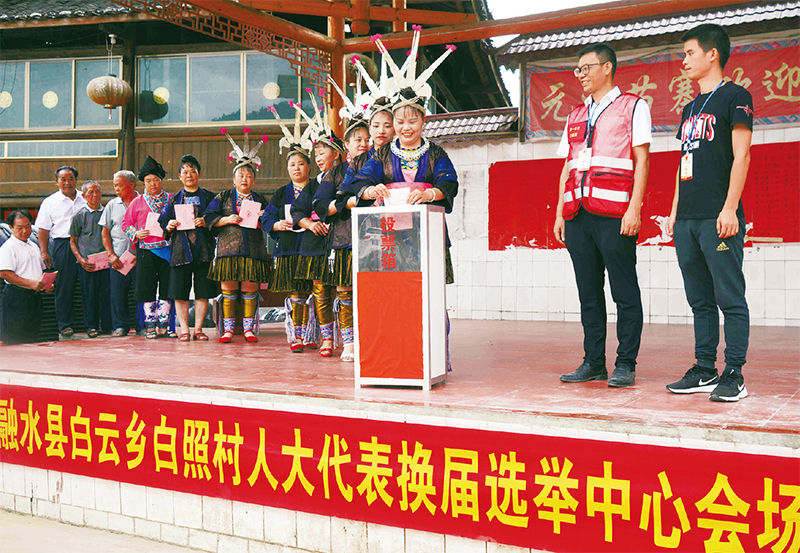 选举人大代表,是人民代表大会制度的基础,是人民当家作主的重要体现。图为2021年7月22日,广西柳州市融水苗族自治县白云乡群众进行县、乡两级人大代表换届选举。 求是图片 龙涛/摄
