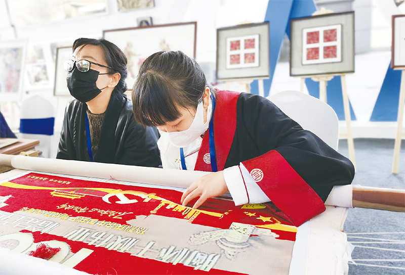 2021年6月,在青海考察时,习近平总书记强调“学史崇德”。图为青海群众以青绣献礼党的生日。 青海省委宣传部供图