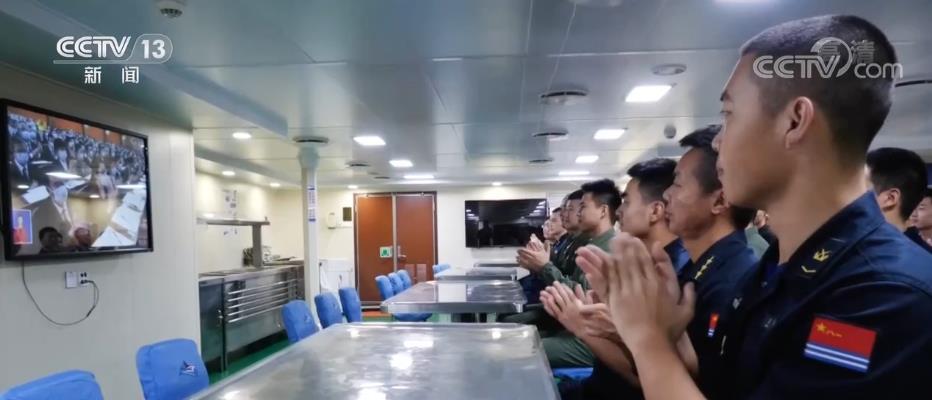 正在亚丁湾执行护航任务的海军第42批护航编队官兵,在军舰这方“流动的国土”上收看了盛会。官兵们认真学习总书记的报告,畅谈学习体会。