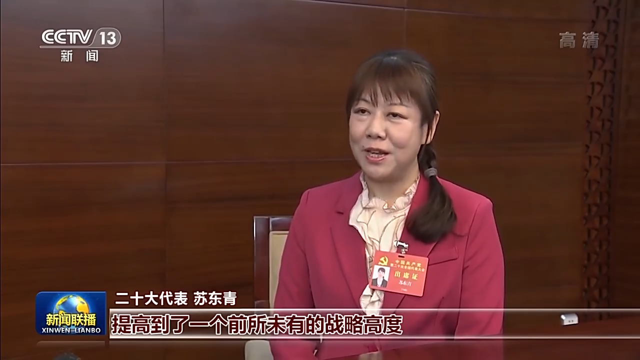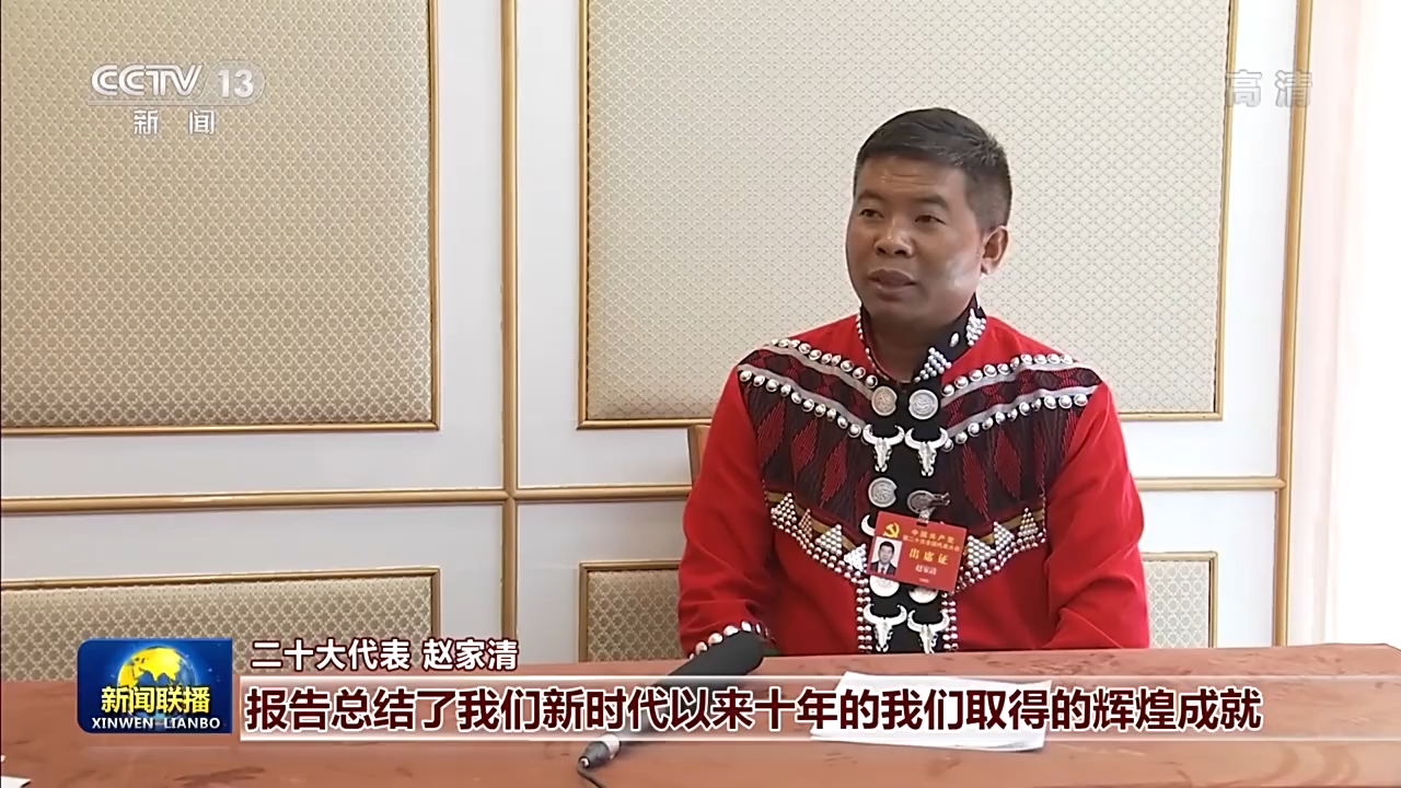 二十大代表 赵家清:报告总结了我们新时代以来十年的我们取得的辉煌成就,也描绘了我们未来五年乃至更长(时期)的一个蓝图。报告当中提到了,我们自然环境是我们赖以生存的基础,我们要顺应自然、爱护自然、保护自然,大力推进乡村振兴。