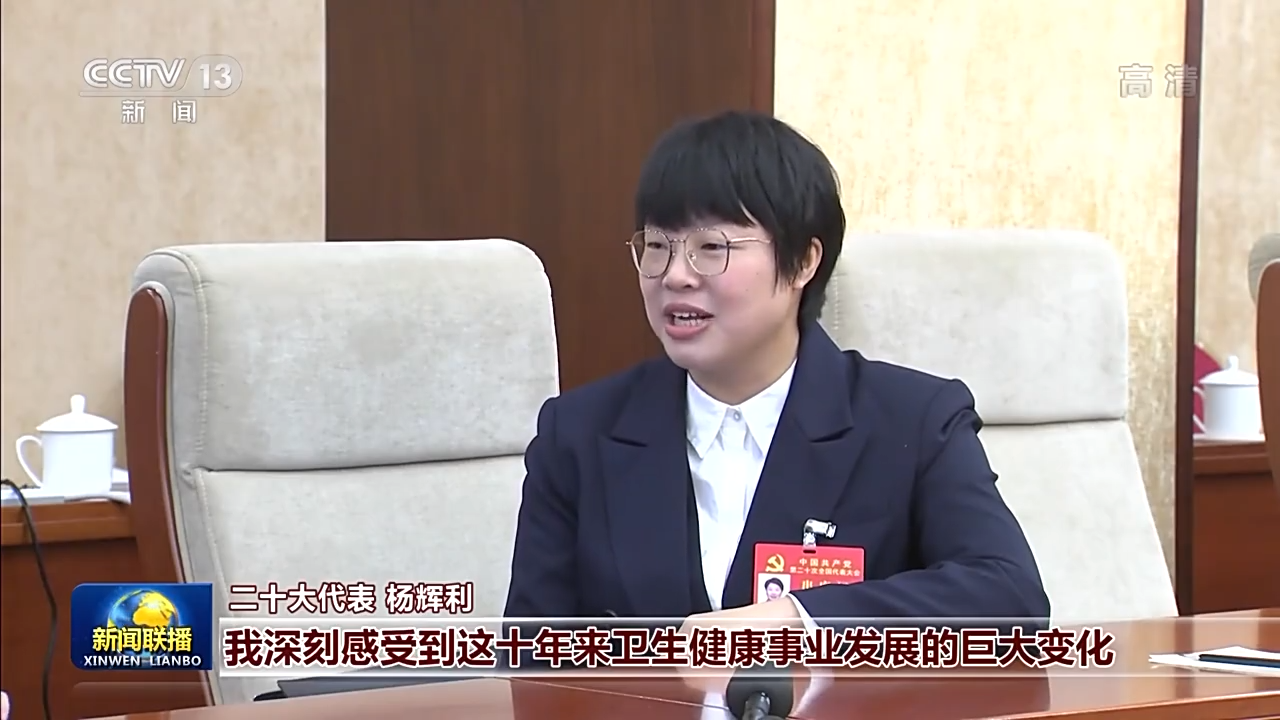 二十大代表 杨辉利:作为亲历者、受益者、践行者,我深刻感受到这十年来卫生健康事业发展的巨大变化。感受到以习近平同志为核心的党中央始终坚持以人民为中心的发展思想,我将发挥党代表作用,立足岗位职责,为健康中国建设贡献青春力量。