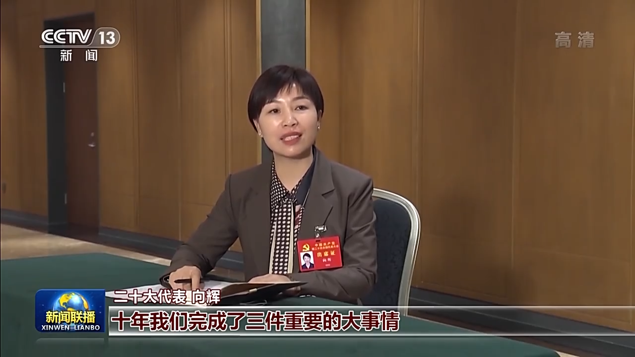 二十大代表 向辉:总书记说十八大以来,十年我们完成了三件重要的大事情。其中第三点就讲到完成脱贫攻坚、全面建成小康社会,在讲到全面推进乡村振兴时,专门讲到扎实推动乡村产业、人才、文化、生态、组织的振兴,这个我是深有感触的,我既是亲历者又是见证者。