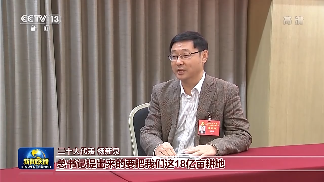 二十大代表 杨新泉:总书记提出来的要把我们这18亿亩耕地基本农田要打造成高标准农田,我们科技工作者所要做的就是要充分发挥科技在这个过程中的作用,通过我们的研究来保证我们国家的种源自主可控,实现我们国家的种业科技自立自强。