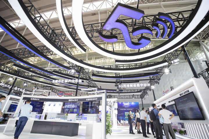 8月10日,2022世界5G大会在黑龙江省哈尔滨市开幕。工作人员在布展。新华社记者 张涛 摄