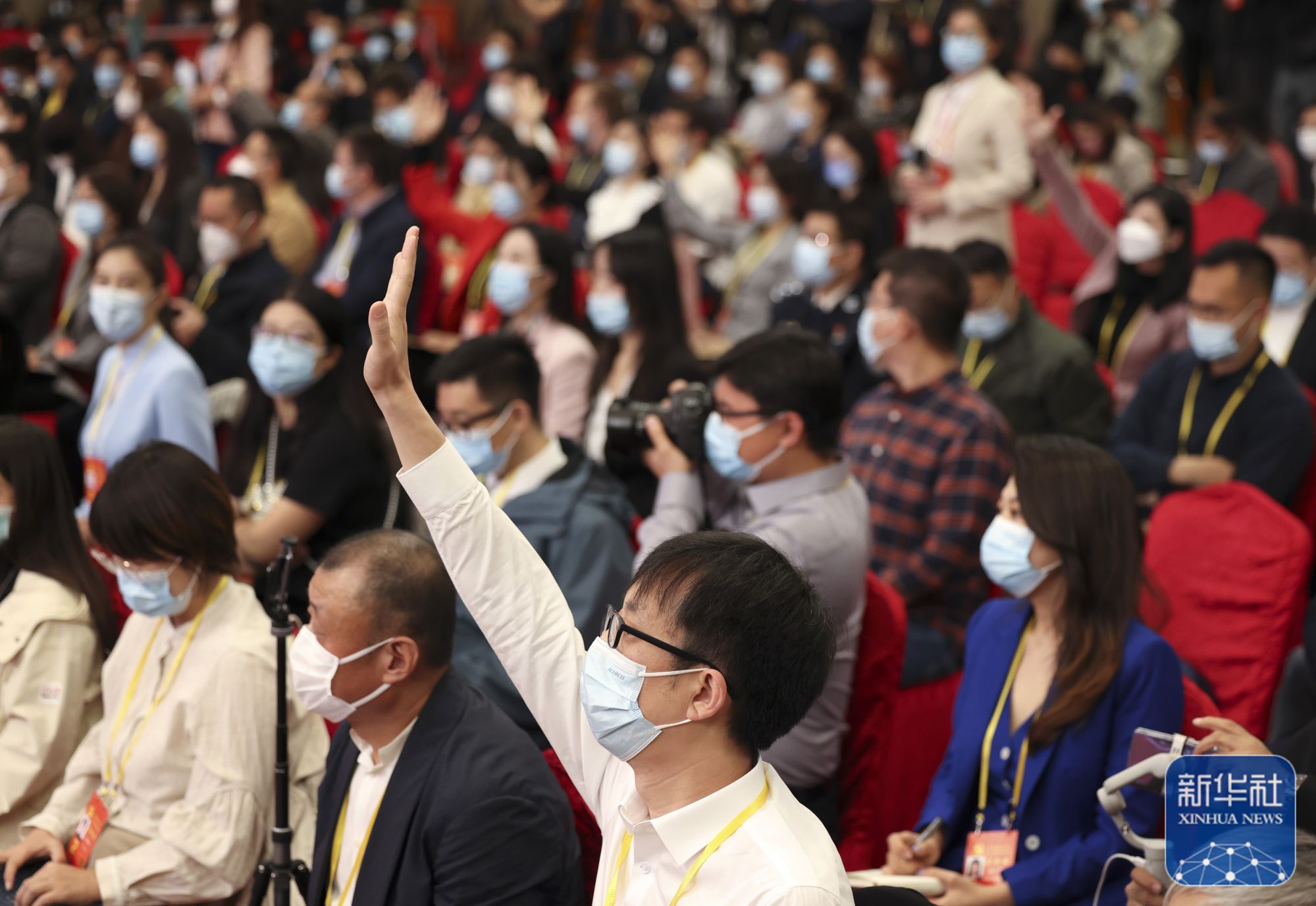 10月19日,中国共产党第二十次全国代表大会新闻中心举行记者招待会。中央政法委副秘书长訚柏,最高人民法院党组副书记、分管日常工作的副院长、一级大法官贺荣,最高人民检察院党组副书记、分管日常工作的副检察长、一级大检察官童建明,公安部党委委员、副部长、国家移民管理局党组书记、局长许甘露,司法部党组成员、副部长左力围绕“坚持以习近平法治思想为指引 努力建设更高水平的法治中国”主题与记者交流。这是记者在分会场举手提问。新华社记者 李明 摄