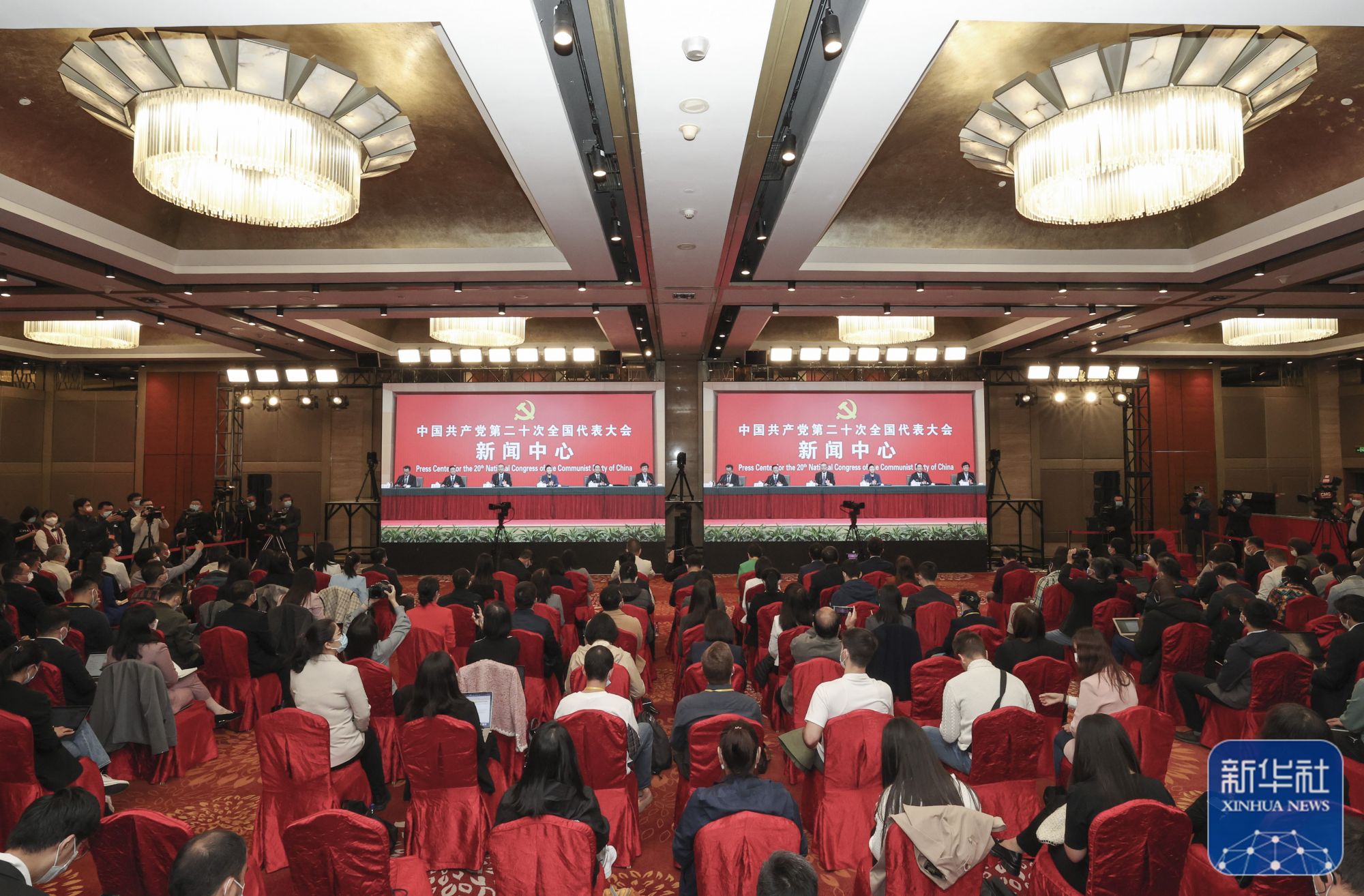 10月19日,中国共产党第二十次全国代表大会新闻中心举行记者招待会。中央政法委副秘书长訚柏,最高人民法院党组副书记、分管日常工作的副院长、一级大法官贺荣,最高人民检察院党组副书记、分管日常工作的副检察长、一级大检察官童建明,公安部党委委员、副部长、国家移民管理局党组书记、局长许甘露,司法部党组成员、副部长左力围绕“坚持以习近平法治思想为指引 努力建设更高水平的法治中国”主题与记者交流。这是分会场。新华社记者 殷刚 摄
