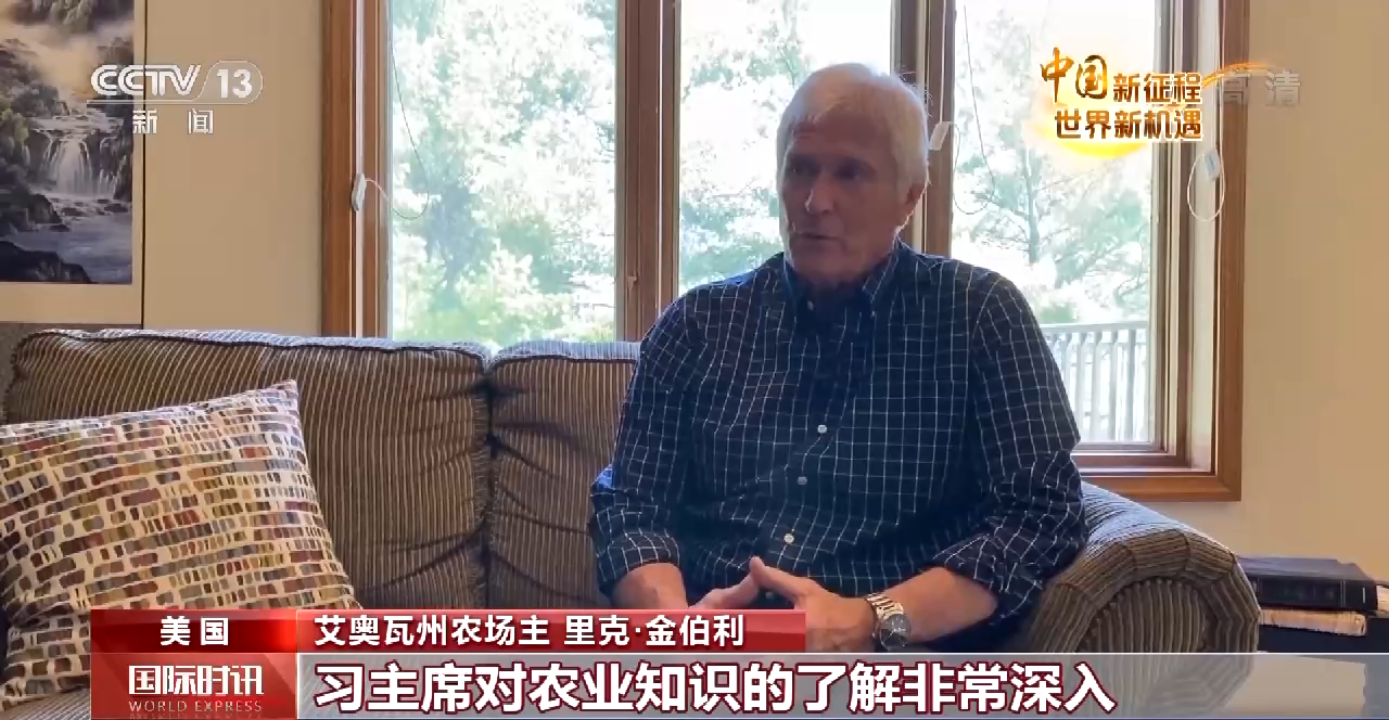里克·金伯利是艾奥瓦州一位农场主,习近平主席早年访问美国中部艾奥瓦州时曾到访过他的农场,在他的家中至今珍藏着习主席来访时赠送的礼物。回忆起与习近平主席交谈的场景,金伯利表示,习近平主席多次提到农业关乎百姓生活,他一直强调农业对中国乃至世界发展的重要性。