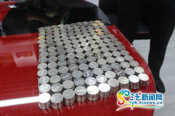 1399枚1元硬币(三亚新闻网记者 马伟元 摄)