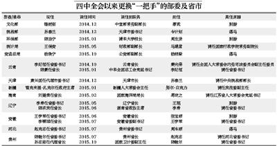 二是源于反腐的连带效应,如天津、贵州、新疆。天津市原市委书记孙春兰补缺统战部后,由此造成天津市长黄兴国代理市委书记一职近一年;贵州也是如此,原省委书记赵克志调任河北补缺,党政一把手因而调整。