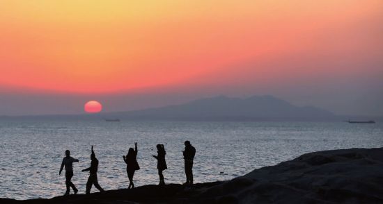 福建晋江的大陆游客眺望对面的金门岛。