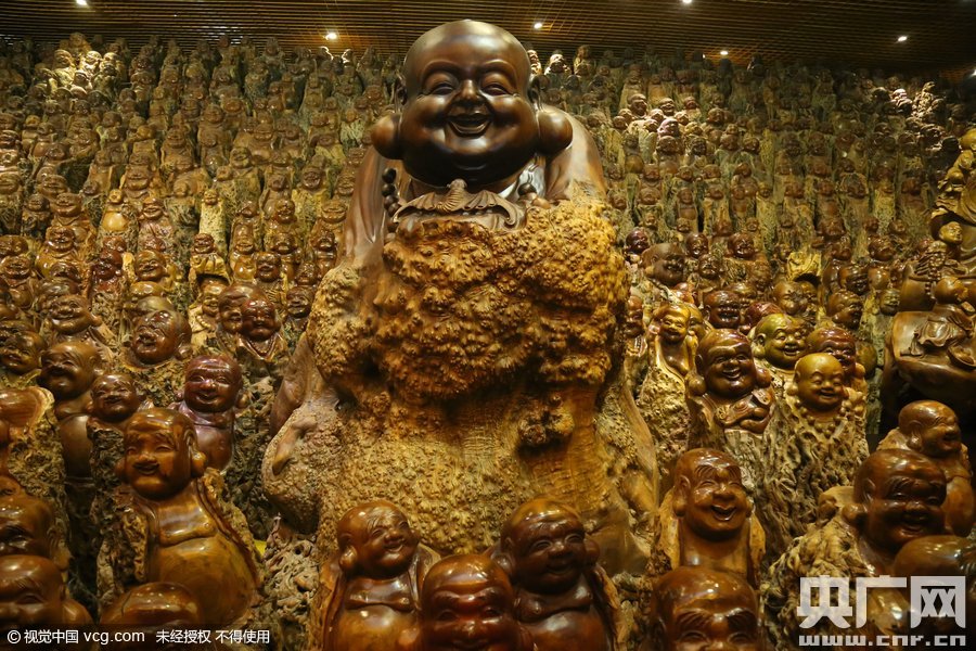 2015年11月23日,河南省郑州市,在某企业的一座万佛苑内,存放着9000多座用枣树雕刻而成的佛像,造型迥异,风格各不相同,场面十分震撼。