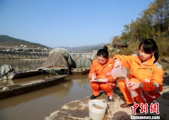 广元环保工作人员正在嘉陵江饮用水源地提取检测样本 广元市环保局 摄