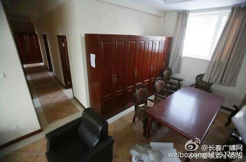 由于周六为非工作日,高档公寓大门紧锁。记者从窗外可看到该公寓已经基本完成装修,公寓共分两层,均按套房设计,室内摆设着宽大的餐桌、做工精美的座椅、衣柜以及沙发等设施。房间南北通透,每间卧室有两张单人床。该公寓究竟何时竣工,记者不得而知,不过公寓附近的一块标牌上显示该“别墅”2009年8月时就已完工。