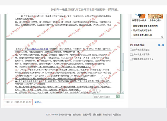 2015年9月19日23时57分,马军将“神押题”资料上传到了百度网盘。(2015年10月截图)