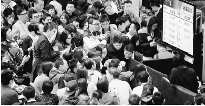 拥挤的人群在香港新楼发售抽签现场。资料图片