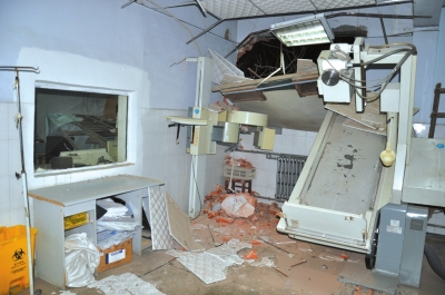 “现在拍片都做不了。”放射科值班医生称,因遭强拆,他们的工作受到影响,已没有病人来看病。因担心CT室内贵重物品丢失,医院用木板挡住了被强拆的窗户洞口。