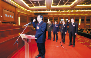 17日,市十三届人大七次会议第三次全体会议新当选的国家工作人员向宪法宣誓。 记者王俊星摄
