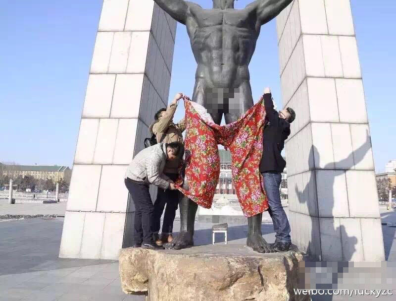 提到长春文化广场的“裸男”,相信大家对这个标志性建筑物都很熟悉。然而就在1月30日下午,网络上疯传着一组“长春文化广场 裸男 被穿上花色裤子的”照片。