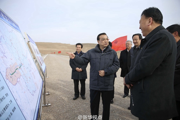 李克强1日冒着零下10度严寒登上宁夏固原市中庄水库大坝,察看城乡饮水安全工程建设情况。总理说,西海固因严重缺水苦甲天下,历史上落在贫困最后面,现在要走在脱贫最前列。要通过建设好重大民生饮水工程,彻底拔掉西海固贫困的根子。(据新华社“新华视点”微博报道)