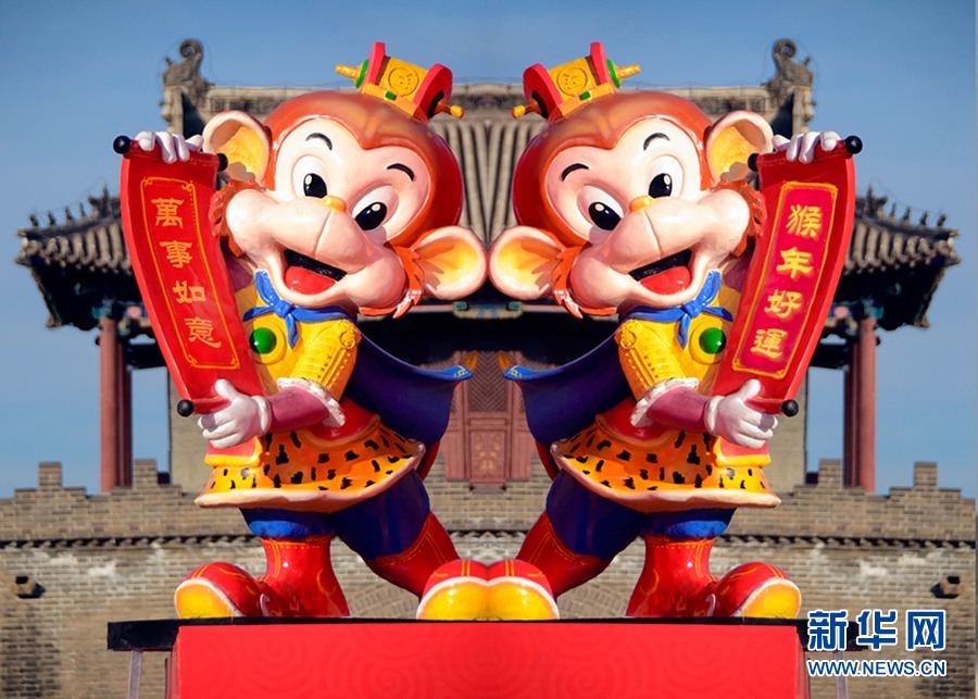在猴年到来之际,天津蓟县古城装饰一新,每天有大量游客来这里观光采风。 新华网影巢摄影师 蓟州吉祥 摄