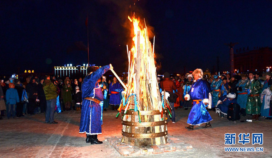 内蒙古自治区的蒙古族祭火习俗,祝愿来年风调雨顺、家业兴旺。新华网影巢摄影师 峰华 摄