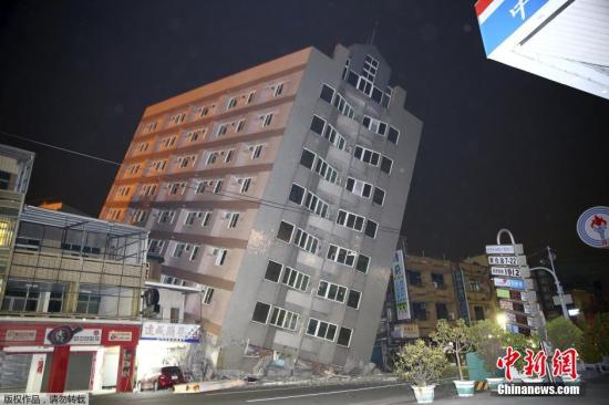 据中国地震台网测定,2月6日3时57分在台湾高雄市发生6.7级地震,震源深度15千米。清晨的强震造成台南市多栋楼房倾斜、倒塌。图为台南市新化京城银行大楼发生约75度的严重倾斜。