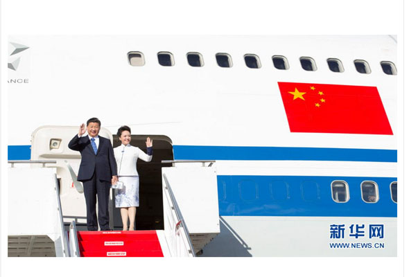 图为:2015年7月8日,国家主席习近平乘坐专机抵达乌法,应俄罗斯联邦总统普京邀请,出席金砖国家领导人第七次会晤和上海合作组织成员国元首理事会第十五次会议。新华社记者谢环驰摄