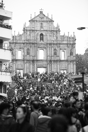 2月11日,各地游客在澳门大三巴牌坊前游览。当日是农历正月初四,澳门大三巴牌坊、议事亭前地等旅游景点游人如织。新华社发