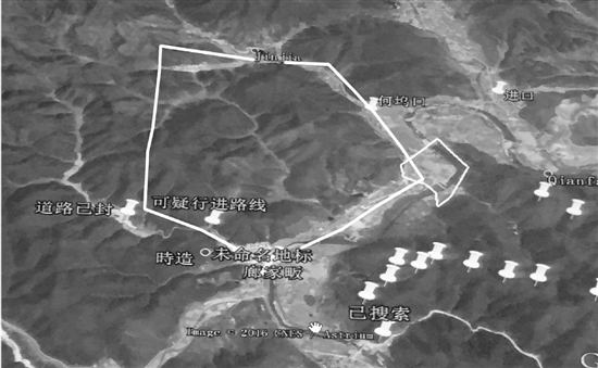 搜救地图:小圈30多公里区域已搜索,大圈区域基本排除孩子进去的可能性。