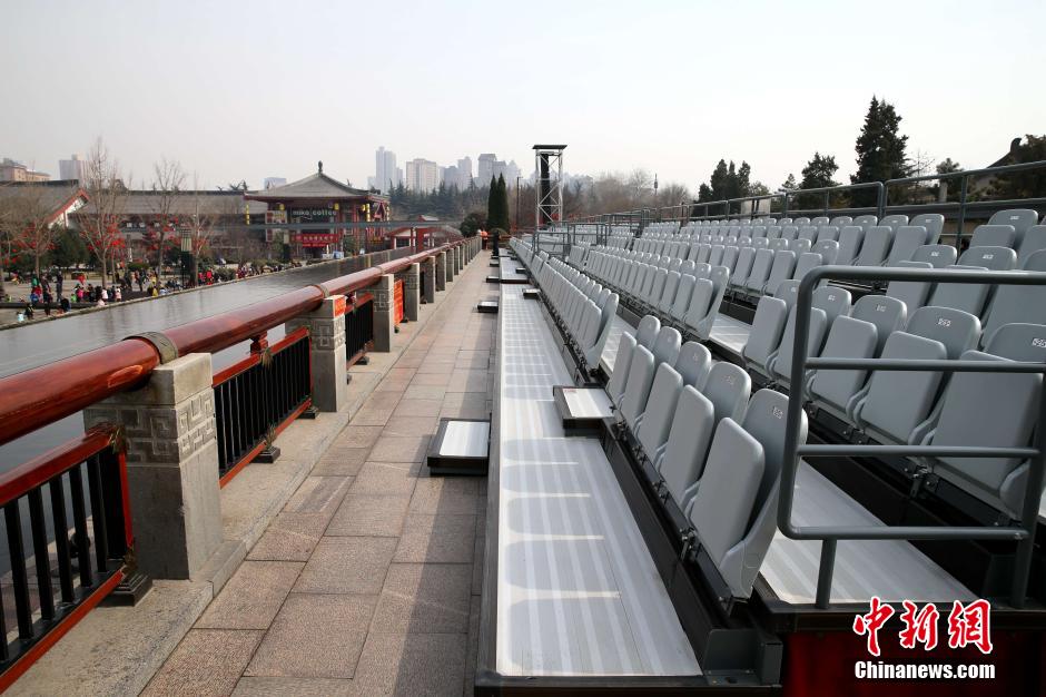 2月18日,在大雁塔音乐喷泉广场南侧高台,临近喷泉处皆被护栏围起并禁止行人进入,护栏内摆放了300余个座位,费用为30元每人。据了解,大雁塔音乐喷泉自2003年建成后,免费向游客开放,每年吸引大量游人。