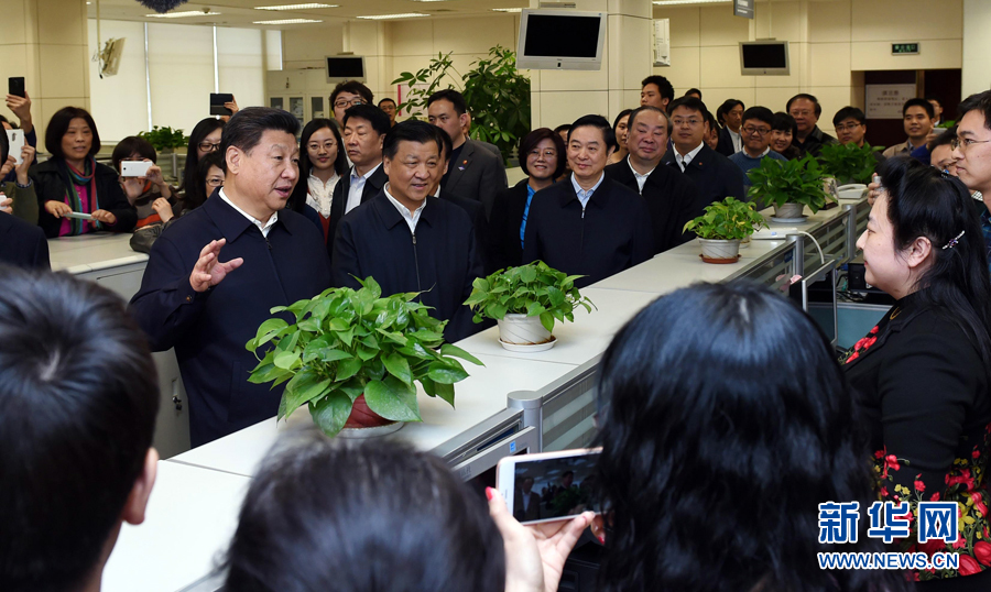 2月19日,中共中央总书记、国家主席、中央军委主席习近平在北京主持召开党的新闻舆论工作座谈会,并到中央新闻单位调研。这是习近平在新华社同一线编辑记者交流。新华社记者 饶爱民 摄