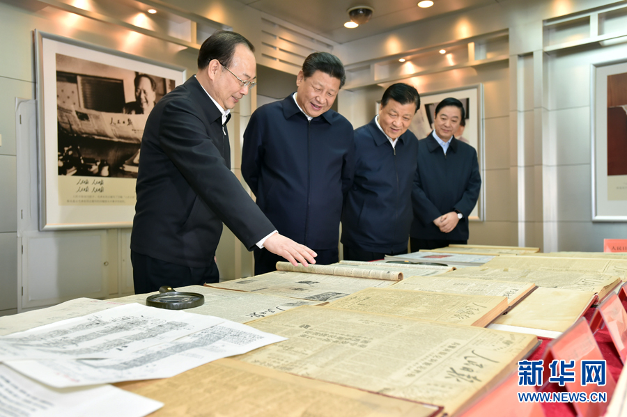 2月19日,中共中央总书记、国家主席、中央军委主席习近平在北京主持召开党的新闻舆论工作座谈会,并到中央新闻单位调研。这是习近平在人民日报社了解人民日报发展历程。新华社记者 李涛 摄
